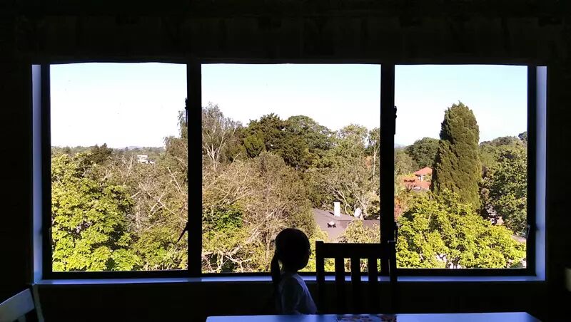 No,No,这不是某个旅游景点的旅馆的窗外,而是叮叮站在自家的窗前……