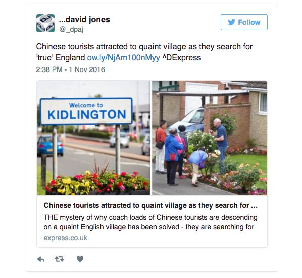这让我想起之前看过的一则新闻,标题大概是《中国游客闯入英国小镇,当地居民看懵》。