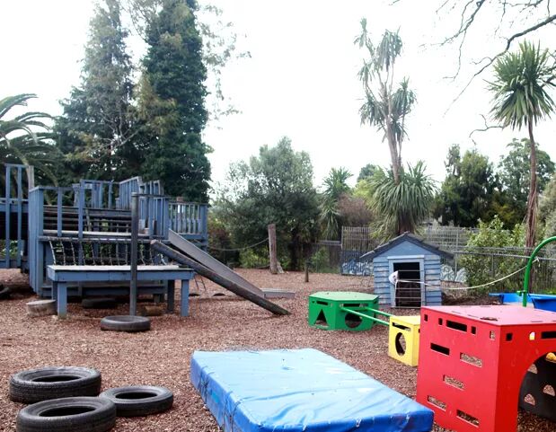 室外的活动区就是幼儿园的院子,新西兰的独栋房子都会带有院子,幼儿园其实就是一个较大的带院独栋房。