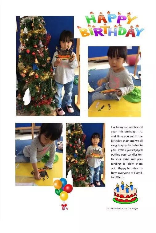 生日的孩子被簇拥在中间,头戴皇冠,孩子们一起拍手唱歌,很满足,很快乐,叮叮也在新西兰的幼儿园度过了四岁的生日。