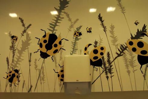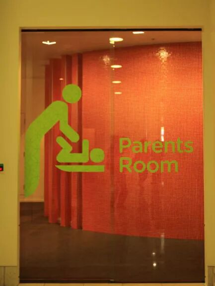 超市或商场的公厕,一般都是内外两进,第一间是整洁而宽敞的休息室,有桌椅沙发、书报杂志;在休息室的左右两侧,是男厕和女厕,里面的便池区分大人与小孩的,高度有所不同;休息室的正对面,往往安排有母婴室,可供父母为婴儿更换尿片、清洗,以及哺乳。