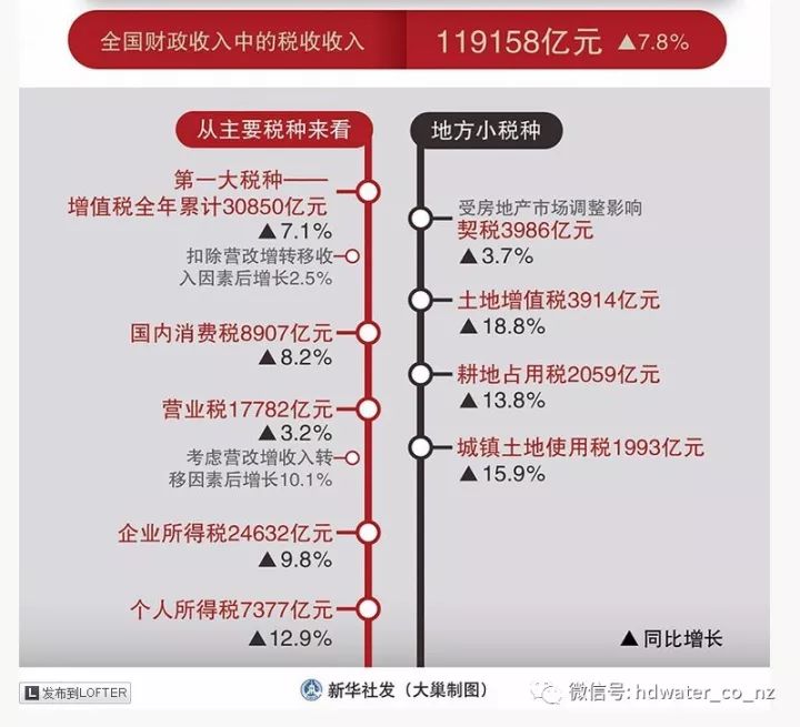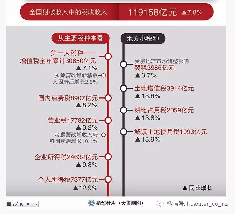 (上图是2015年税收收入税种,其中地方小税种基本都和房地产有关,总计在1.2万亿左右, 但如果考虑土地转让税和房地产企业上缴税收,与房地产相关税收收入接近6万亿,这中间还不包括房地产上游产业和房地产下游产业的税收上缴, 所以仅房地产业本身占中国财政收入就接近40%, 理解了这一点, 会帮助理解房地产对于中国过去, 现在包括未来的重要意义 。
