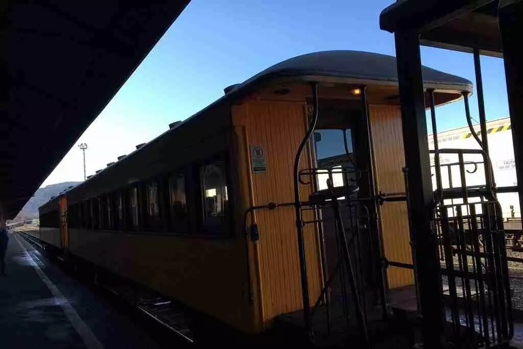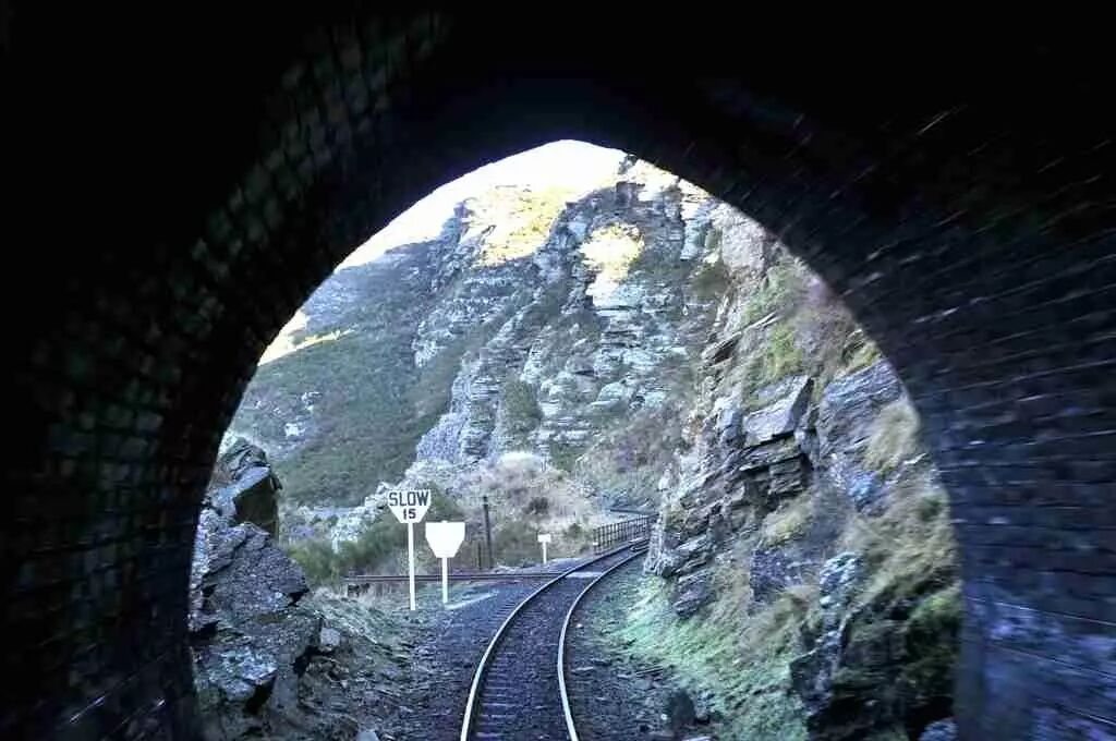 火车里面有个解说,从开始就一直嘚逼,不过站在外头听不太清楚,大意上就是介绍沿途风光,过一些比较特别的地方时(峡谷、隧道之类的),就会从车厢里蜂拥出一帮人来看,这时车尾就变得挤挤嚓嚓的,还好过一会儿这些人又都缩回去了,剩下的就是我们哥俩儿。
