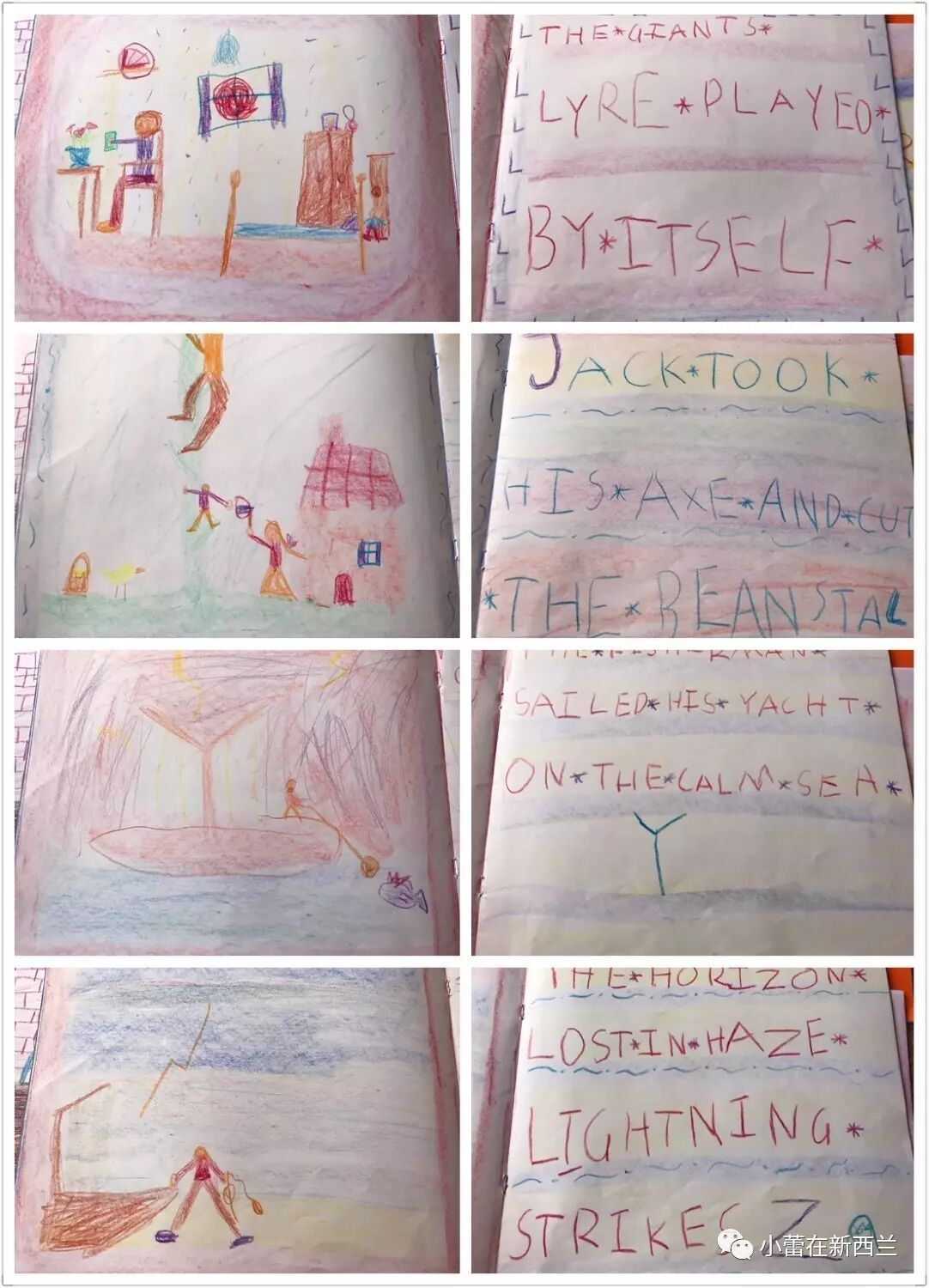 伴随着故事,这一年也进入尾声,女儿的主课本上开始出现书写,通常都是故事的一句话。老师在每次故事里,都会让他们选择一句话写在主课本上,这也是他们writing的开端。
