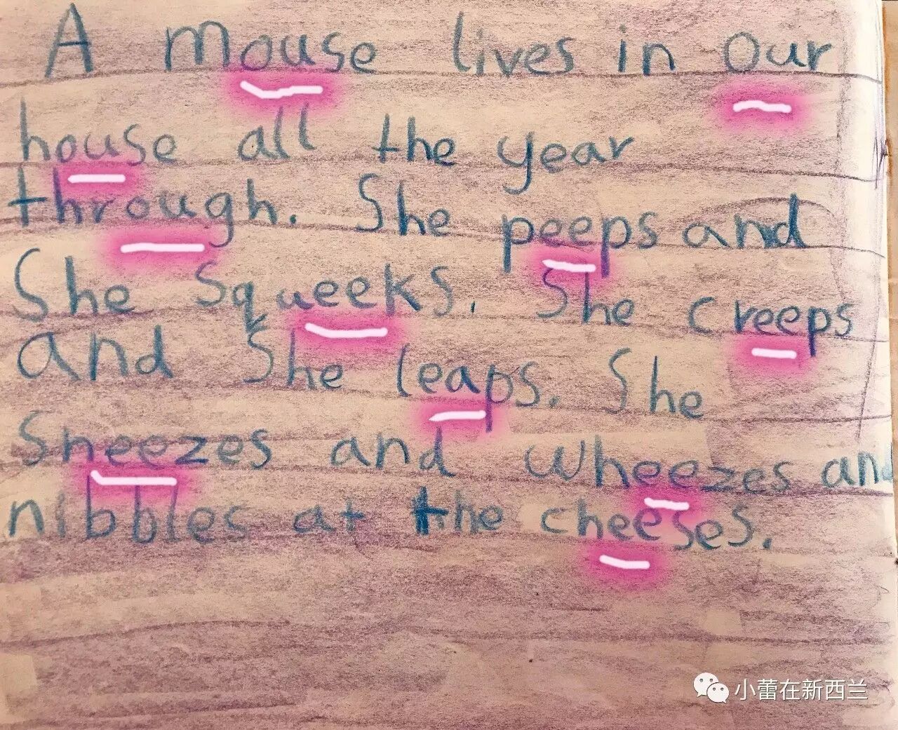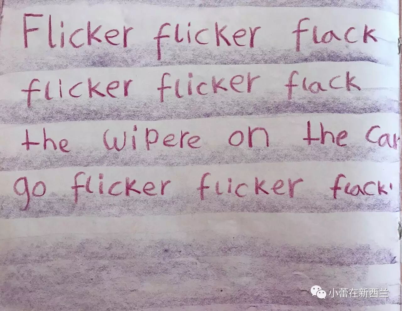 二年级开始,女儿开始写的更多,读的更多,都是类似下面这样的一些朗朗上口的一段话,在读的过程中练习和发现一些字母或字母组合的发音。