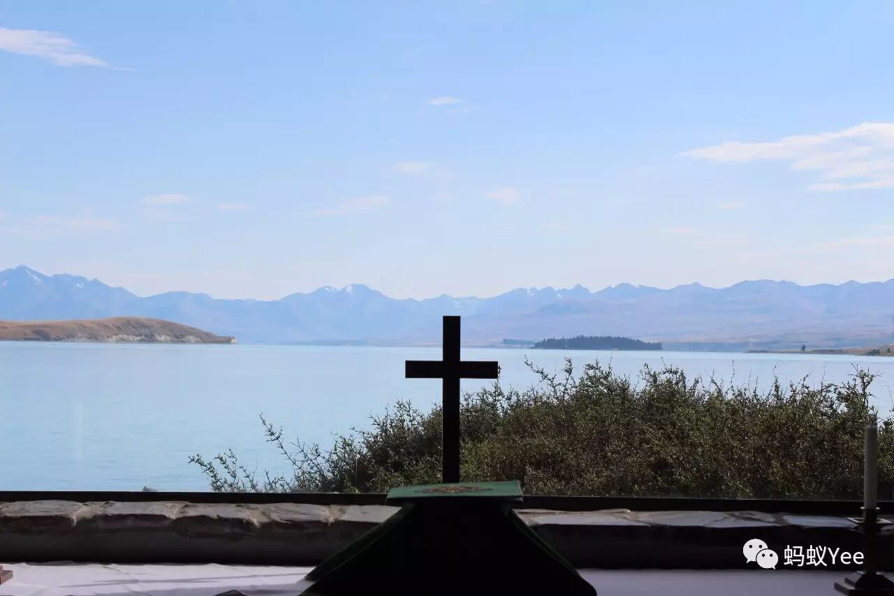 这就是大名鼎鼎观星胜地,在这里有新西兰“最美的窗口”——好牧羊人教堂里正对着Lake Tekapo的窗。Tekapo是冰川堰塞湖,从冰川上冲刷而来,湖水里携带着有许多极为细小的颗粒,在阳光的照射下折射光线,从而形成了这样惊艳的色彩。