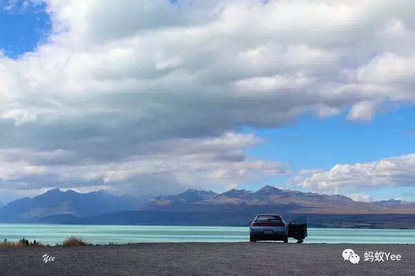在开往库克山的沿路,一定会景观同为冰川堰塞湖的Lake Pukaki。他们的形成原理相同,自然拥有同样的色彩。只是Pukaki湖形更为狭长,沿着公路伸展开来,我个人更喜欢这里。(看图,我就问你美不美!)