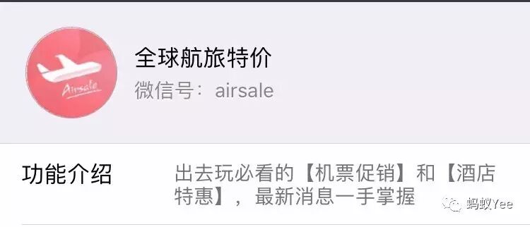 我最常用的一个微信公众号“全球航旅特价”,长这样: