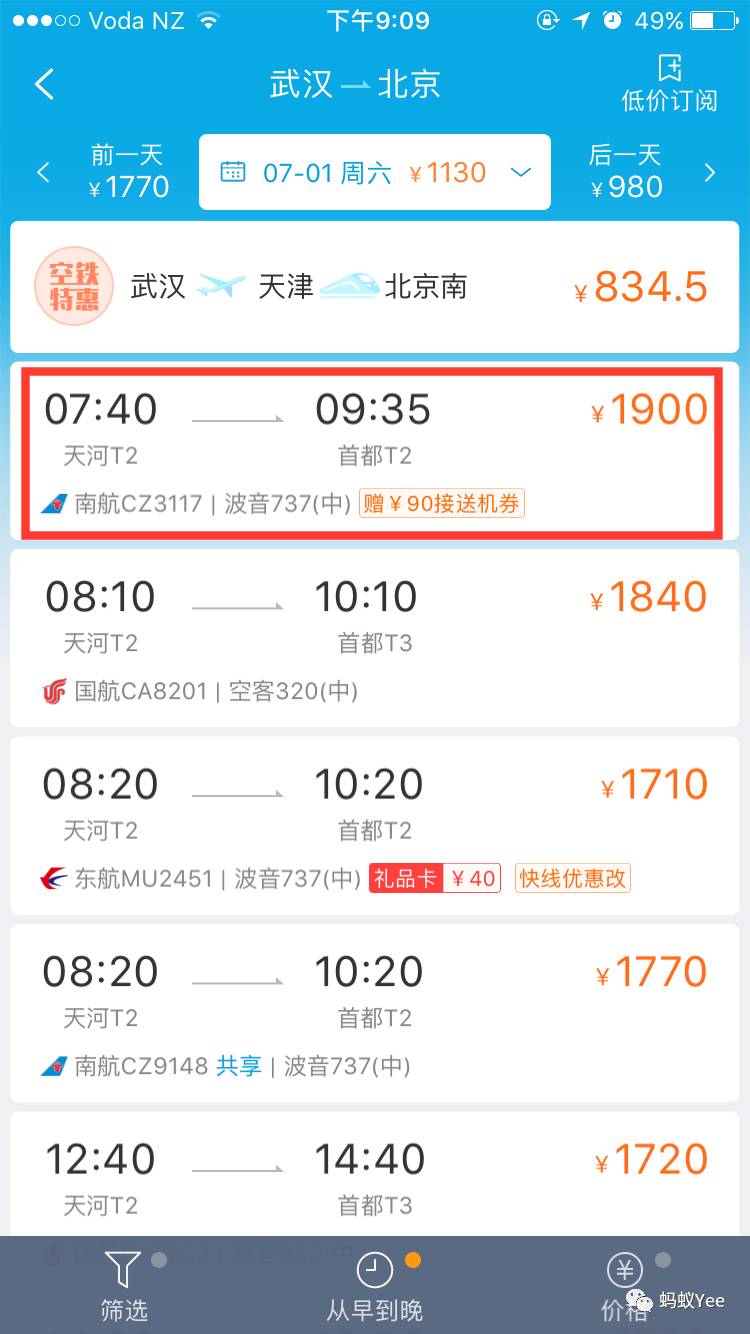 同样的情况也适用于国内。举个例子,比如想要明天飞北京,携程搜一搜,推荐南航¥1900,that's too much!