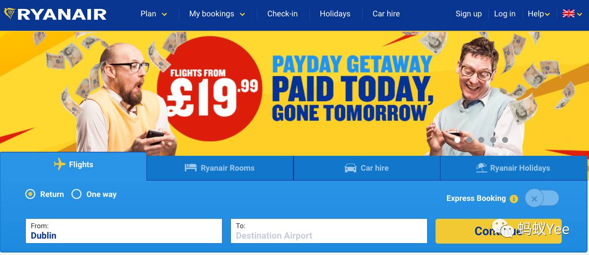瑞安航空:欧洲最大的廉价航空公司,价格是其最大的卖点,它的机票价格是其他航空公司的40%左右(实际上40%都不到),主要航线在西欧和南欧,官网上经常看到十几欧的特价活动。