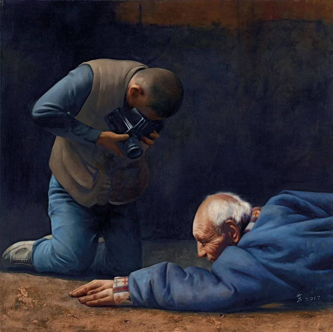 艺术是什么呢?在我的理解中,艺术就是生活。无论从艺术形态、过程、结果等层面都没有逃出过生活的范畴。世上的所有艺术一旦离开了生活就等于放屁,既闻不到芳香,更见不着雅态。艺术是人的艺术,离开了人艺术就不复存在,艺术如此,美术如此,绘画如此。因此,我用对生活的观察、过滤、思考、揭示、激励和鞭策的态度,采取现实主义绘画方式来描述生活,从中清楚地认识到生活中的真、善、美。对于我个人是种记录和存档,对于人们是一种提醒和鼓舞,这就是我做艺术的全部意义。不追求好看,只追求美。