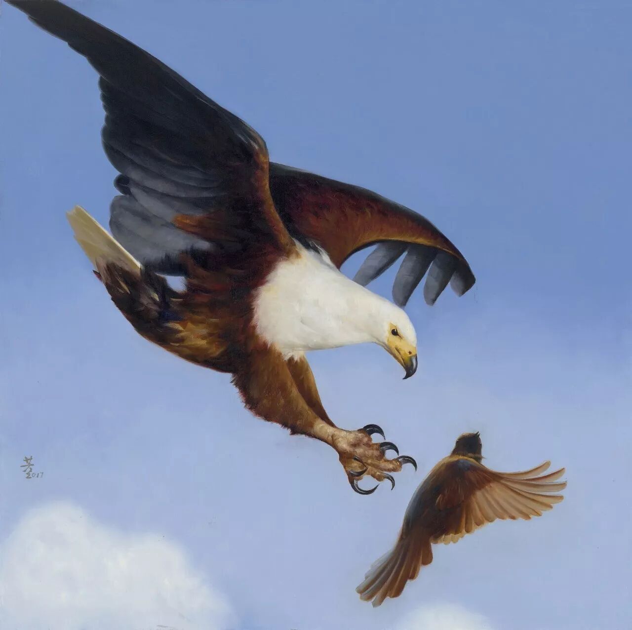 人生是一个说不清楚的玩意儿,常常不按思路行走,稍不留神就会岔路。上个时代末,受到一位喜爱我绘画作品的挚友提醒和启发,痛定思痛,毅然放下一切浮华与虚荣,勇敢地拿起了画笔,用艺术的方式来重蹈生活,在孤独中获取宁静和自我。天公有眼,至于今日终于有了收获,灵魂的天空上迎来了一片蓝天。人生真美好!