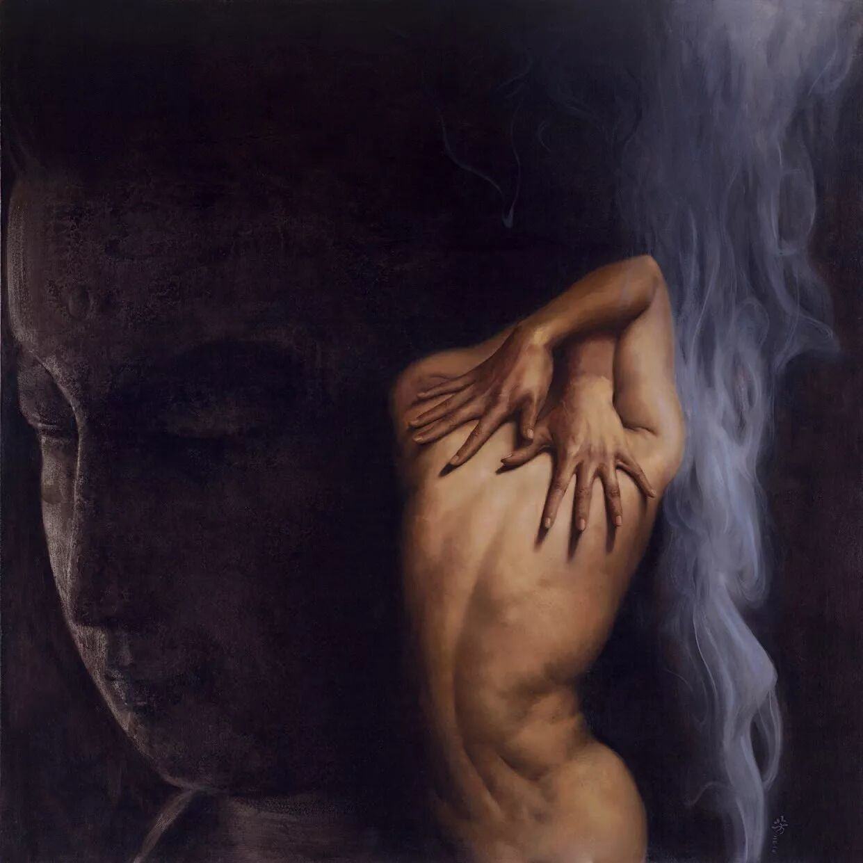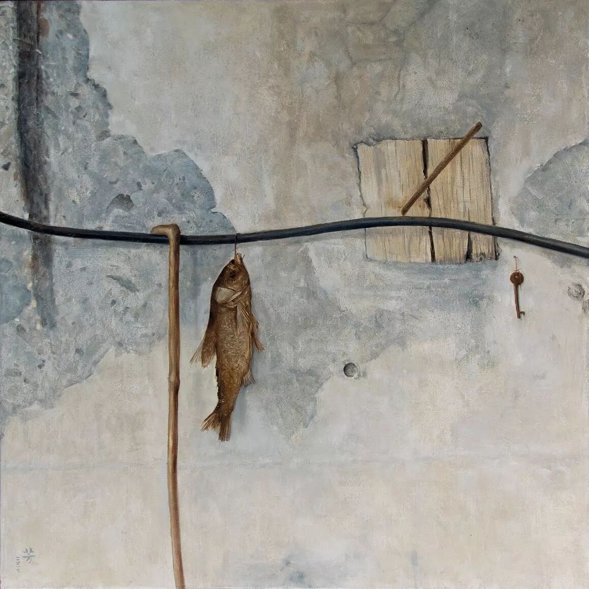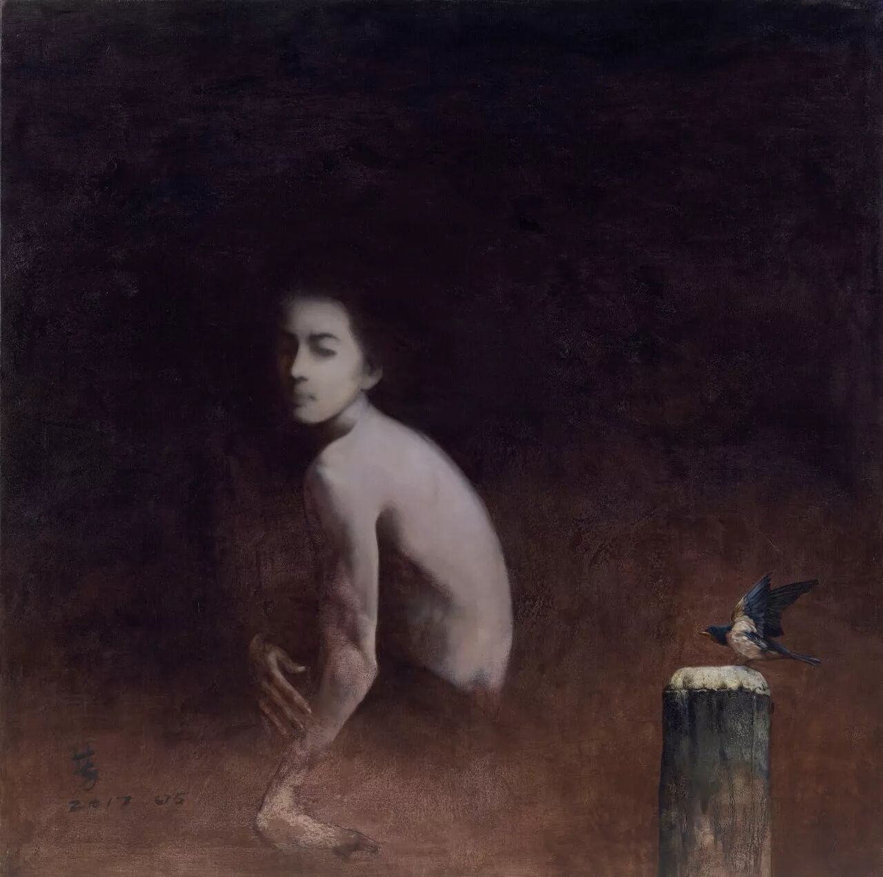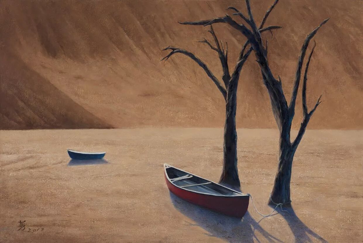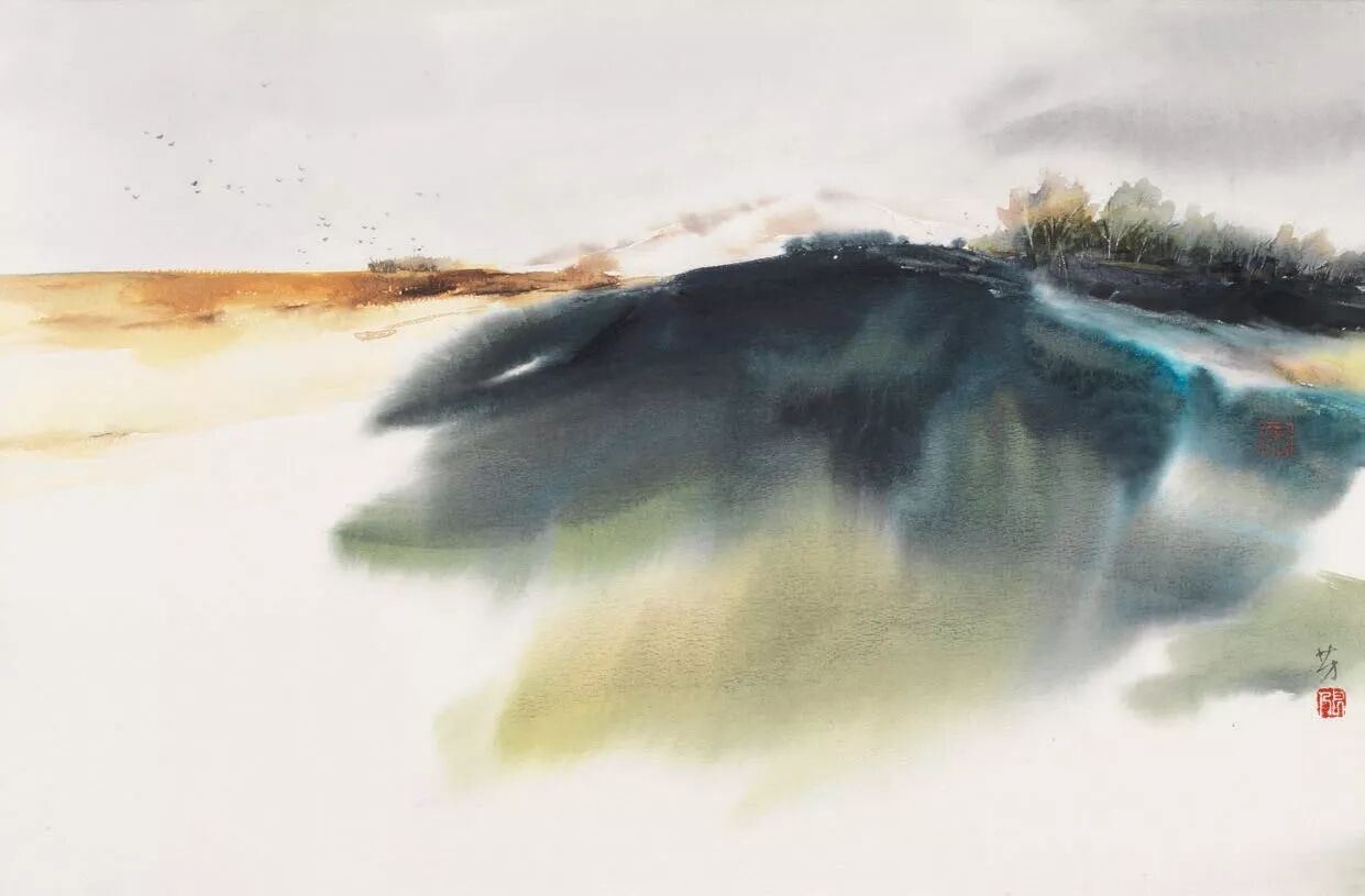 在罗芳的绘画作品里,散发出的是沉静的气息,透溢出的是思者的叩问与追寻。这是一种悟彻后才会有的气息、这是一种淡然后的叩问与追寻。沉静,从来都是波澜不惊的一种力量,这种力量往往来自于滔滔波澜的磨砺。