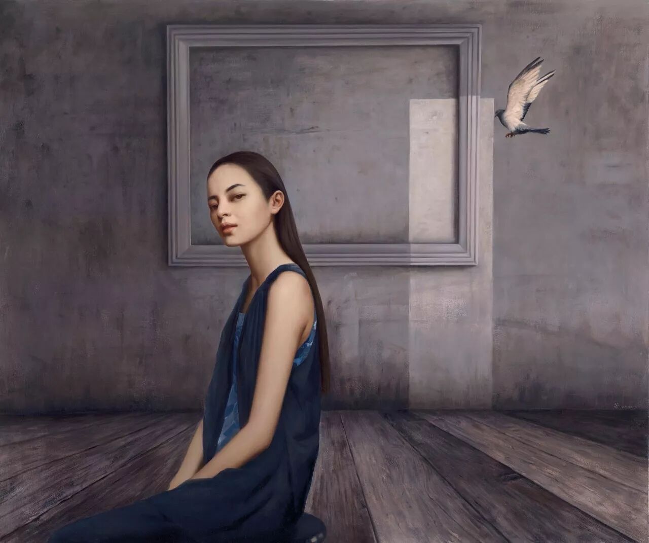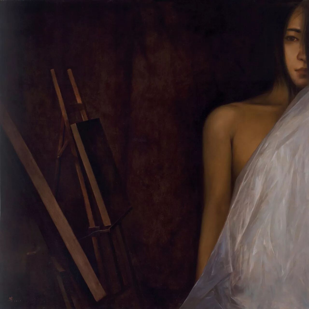 罗芳的作品,手法细致内敛,色彩温和而善以光塑造心境;画里阴影、角落等细节的处理之精微悉心,令人赞叹……犹如一首娓娓吟诵的古典诗,流露出画家对已逝的学院古典主义的怀念与崇敬。
