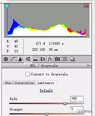 我通常使用的调整肤色工具为camera raw里的HSL面板的红色和橙色