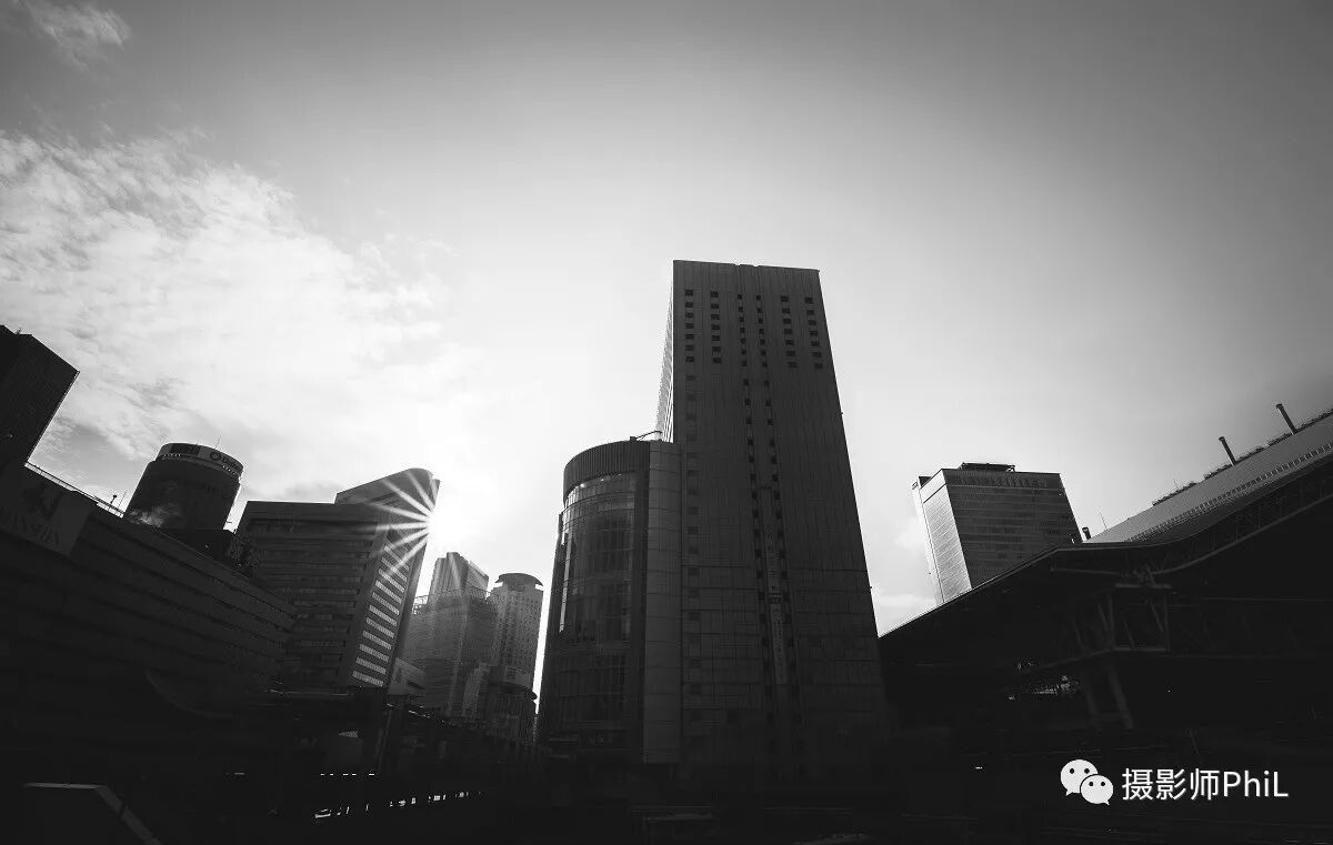 摄于大阪梅田附近某天桥。简单的线条轮廓,强烈的明暗对比,中间凸起的高耸建筑,无形中都给人一种压迫感,某种程度上也反映了日本都市生活的繁华和快节奏以及高密度所带来的压力。