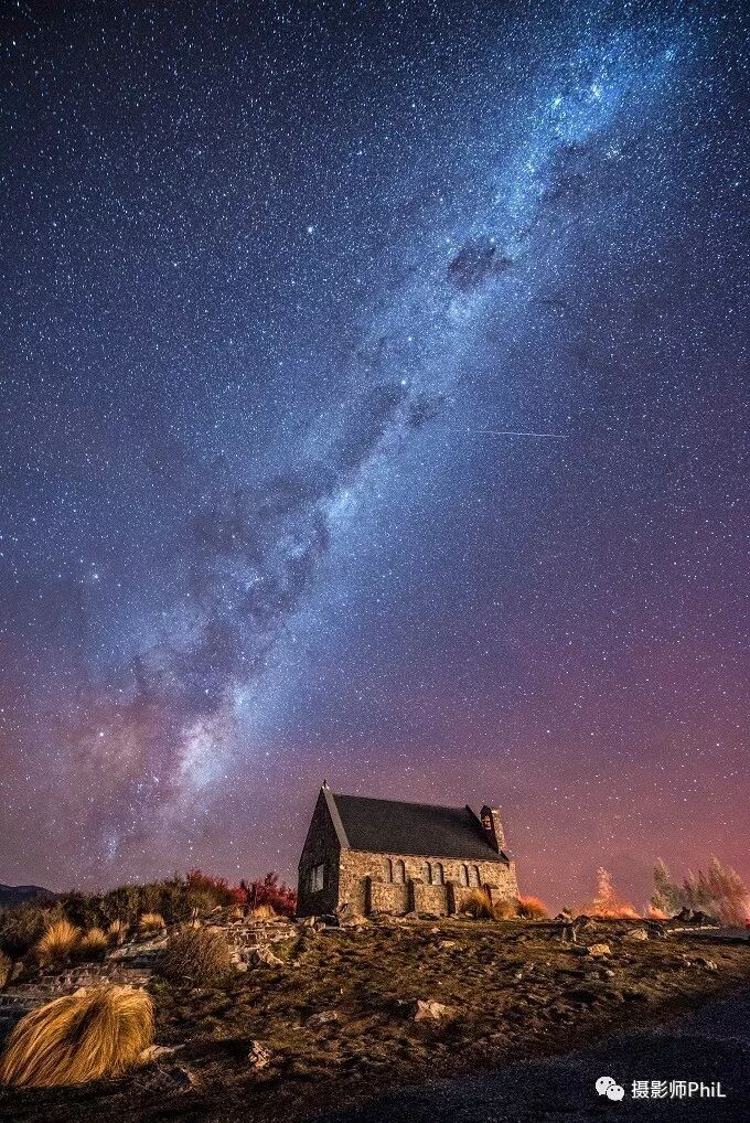 摄于Lake Tekapo。似乎每次来南岛干活儿都会有意外收获,这张之前也入选了图虫app开屏画面。那天银河出现的很早,也正是因为时间早,教堂周围的游人还不太多,才有机会拍到一张没有干扰的照片
