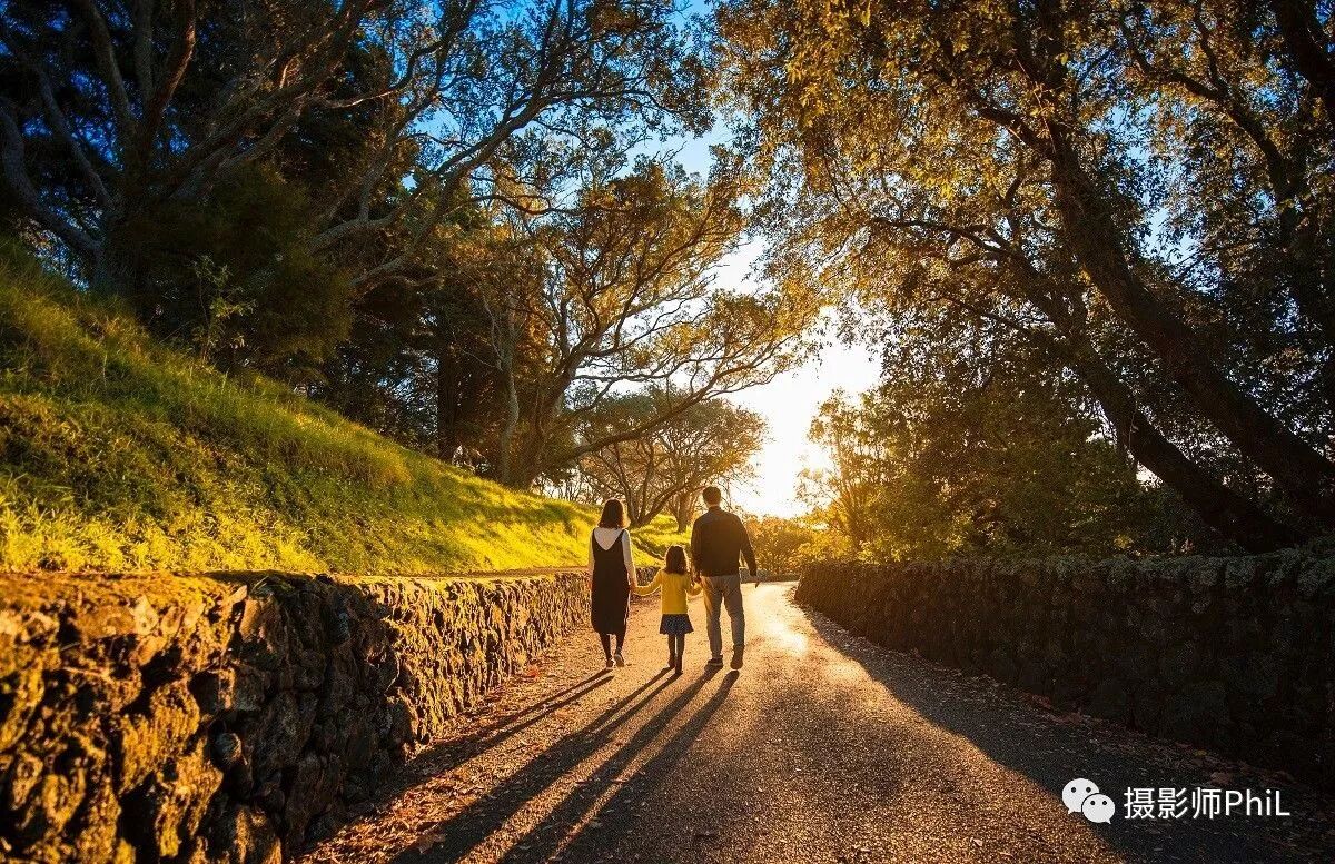摄于Mt Eden。那天给客人拍完照大家正往停车场走的时候恰巧夕阳洒来,我觉得这个场景很温馨,便让客人一家三口牵着手在前面走,我在后面用15-30捕捉了这个幸福的画面。