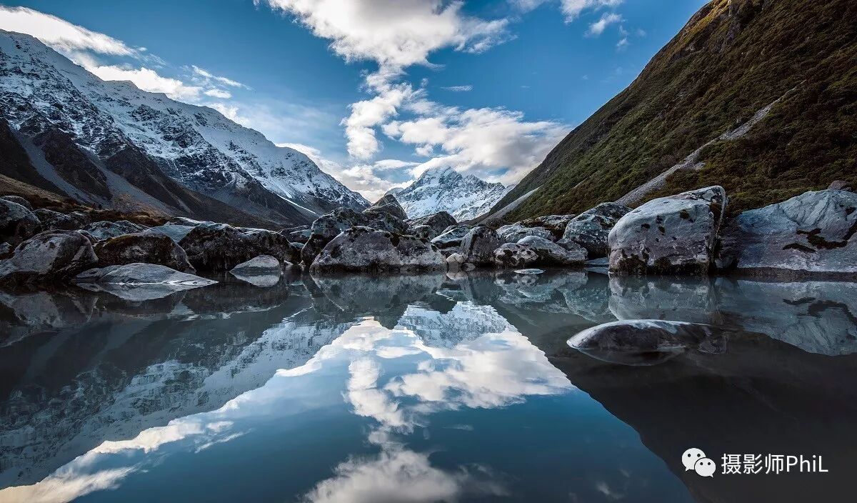 摄于Mt Cook Hooker Valley Track。下面三张照片对很多朋友来说并不陌生,之前专门写过一期,在这里就不再做过多介绍了,总之Mt Cook的风景真的只能用绝美来形容,也是风光摄影爱好者的天堂。