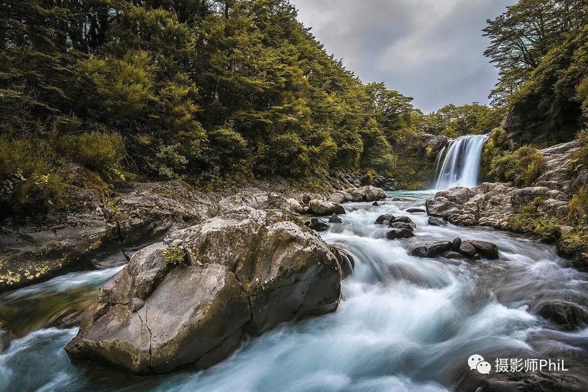 摄于Tawhai Falls(Tongariro National Park)。本打算复活节前去徒个步,结果天气太差没走成。这张照片用15-30拍的,没加滤镜(因为木有)。只要天气较暗,水流湍急,那么无需滤镜也能拍出慢门效果。照片参数为:15mm,F16,ISO100,1/2秒