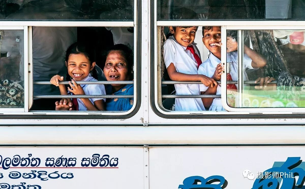 摄于斯里兰卡。7月中旬和James去斯里兰卡遭了三周的罪,人生路上总有那么两个一路相伴的好基友。关于这次旅行我会在日后好好说说,在这里就单描述下这张照片。当地人给我最深刻的印象就是非常热情,尤其对拍照这件事,从老人到小孩都乐此不疲。那天我们在一处旅游景点门口休息,时不时的会有公共汽车在不远处停靠。当这辆车到站时,我端起相机想随便拍几张,而照片中这三个小孩和大妈很显然也注意到了我,于是便报以欢笑,让我能拍到这个接地气的人文瞬间。