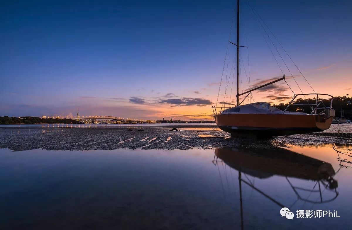 摄于Little Shoal Bay。那段时间到处找有海的地方拍日落,然后某一天就来到了这个离City很近的北岸海边。在华灯初上之际正好赶上退潮到底,许多停靠在港湾里的小船都彻底地露了出来。这支小船停的角度和旁边的积水都刚刚好,于是我把它构到画面右侧,把北岸大桥放在左侧,两者一远一近遥相呼应,整个画面给人一种特别平和的感觉。