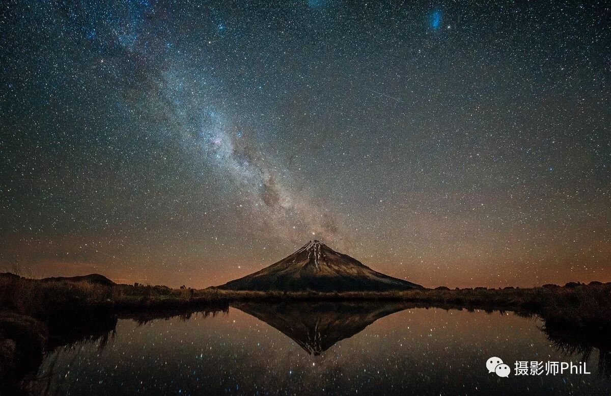 摄于Mt Taranaki。等我拍完上面那张照片后,天色已慢慢暗了下来,我在那待到十点多看了下天空,没太多星星,便再次返回棚屋打算睡觉。由于本人患有严重的神经衰弱,在八人一间的小屋里根本无法入睡,辗转反侧了一个小时后我毅然决定收拾行囊下山回奥克兰。再次走出棚屋,映入眼帘的却是漫天繁星,我开始纠结要不要再去一次湖边(湖边和下山的路是相反的方向,从棚屋走过去要将近20分钟)。最后一咬牙决定再去一次,事后想想这可能是我今年做过最正确的抉择之一。拍完这张照片已是午夜时分,我一路奔袭下山(主要是太害怕了,上山三个小时的路我一个小时就出溜下去了)。给车加满油,去BK买个套餐,顶着大雾,回家。