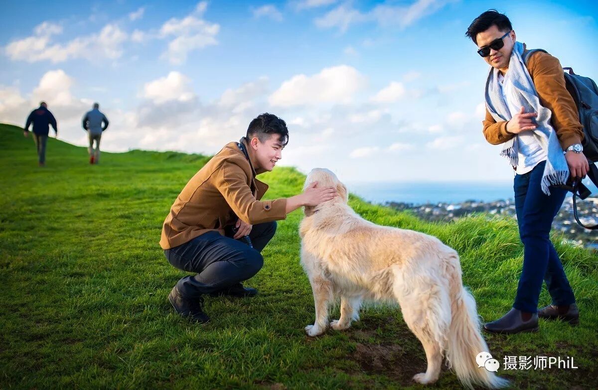 在Mt Victoria山顶偶遇俩洋人遛狗,金毛不愧是狗中暖男,谁都让摸