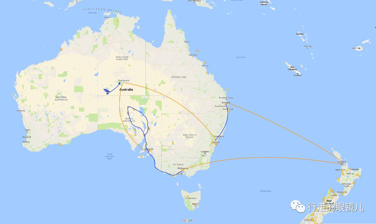 眼镜儿来新西兰那么多年,都没去过隔壁澳大利亚串过门。想想两个离得那么近的国家,纬度差不多,体制差不多,口音差不多,吃的差的有点多,薪水差很多的地方,旅行体验能有多大区别啊,而且眼镜儿属于旷野野叨叨型玩家,对繁华都市和超好逛的购物中心并不是很感冒。但是此次采风证明眼镜儿错了,走了1个月才粗略的玩了右下角小块四分之一。