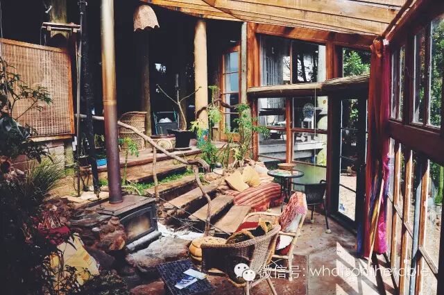 当时室内开着音乐,却见不着半个人影,我也不好意思贸然闯入,就在外面试着喊了好几声,总算把老板叫了出来,他说他正在大扫除,但还是非常热情地带我参观了他的客栈,也跟我讲了当时他设计和修建客栈的过程,如何利用废弃材料,如何结合生态环保。这些都让我更加喜欢这里。