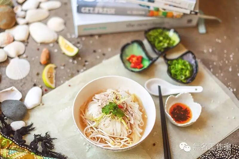 4.热汤浇粉里。根据个人喜好加入剁椒香菜葱花少许胡椒和盐调味,也可撒上炸红葱头增加口感和香味。