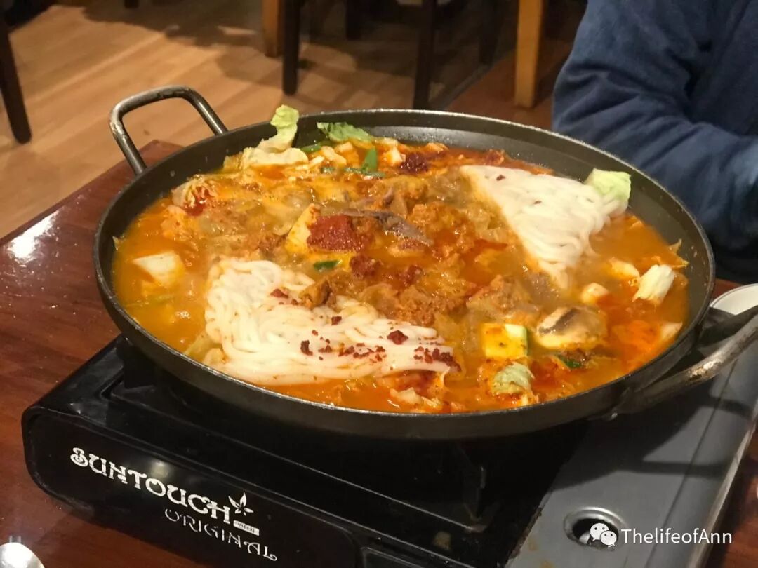 奥克兰的冬天真的很冷,一到饭点就想吃热热的锅。不能每天吃火锅,却可以换着花样吃别的锅,比如韩国的部队锅。这口看上去又大又丰富的锅,吃起来才知道多么的不实在,还好有点别的东西。